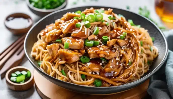 - Combine and Serve: Toss the cooked noodles with the honey garlic chicken in the slow cooker until well coated.