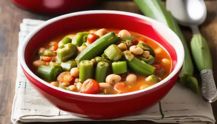 Southern Okra Bean Stew is a hearty and comforting dish that brings together the rich, earthy flavors of the South in one delicious pot. This stew features tender okra, creamy beans, and a medley of vegetables simmered in a flavorful tomato broth, creating a warm and satisfying meal that’s perfect for any time of the year. The okra adds a unique texture and subtle flavor, while the beans provide protein and substance, making this stew both nutritious and filling. Whether served on its own or with a side of cornbread, Southern Okra Bean Stew is a soul-soothing dish that’s easy to make and full of down-home charm.