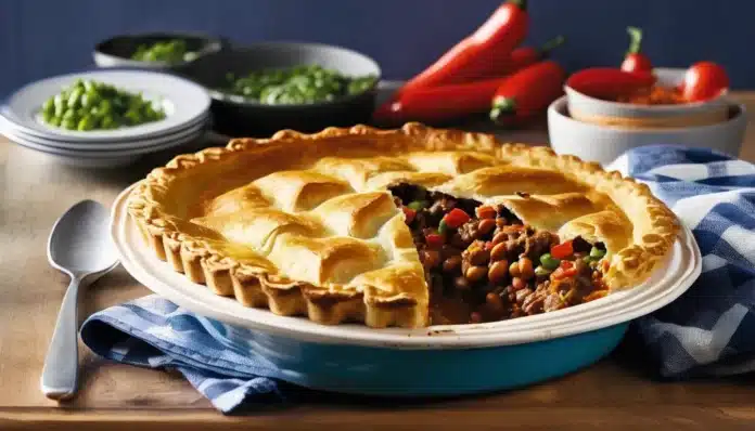 Enjoy your Spicy Bean and Beef Pie, a comforting and flavorful dish with just the right amount of heat, perfect for warming up any meal!