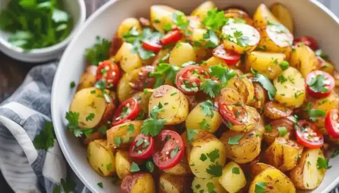 - Chill and serve: Refrigerate the potato salad for at least 1 hour to allow the flavors to meld. Garnish with fresh parsley before serving.