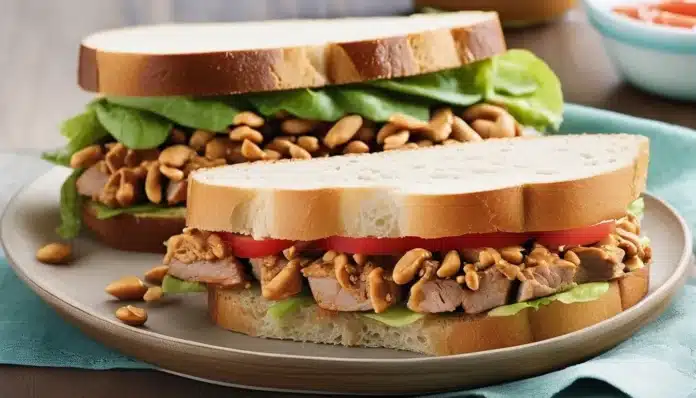 Enjoy your Spicy Peanut Butter and Pork Sandwich, a deliciously daring combination that’s sure to tantalize your taste buds with its rich, spicy, and savory flavors!