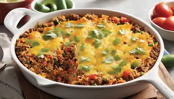 This Spicy Rice Casserole is a hearty, flavor-packed dish that’s perfect for any occasion. With a combination of bold spices, tender vegetables, and savory ground meat, this casserole offers a delightful blend of textures and tastes. It’s an excellent choice for a weeknight dinner or a potluck dish, as it’s easy to prepare and satisfies a crowd. The spice level can be easily adjusted to suit your preferences, making it a versatile recipe for those who enjoy a little kick in their meals.