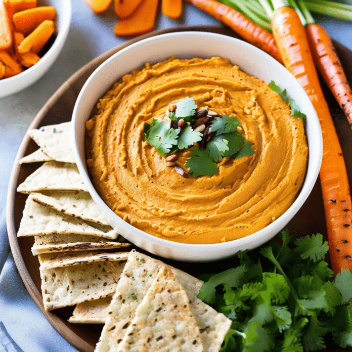 Spicy Roasted Carrot Hummus is a delicious and nutritious twist on traditional hummus, bringing a burst of flavor and vibrant color to your table. Roasted carrots add a natural sweetness and depth, while a blend of spices gives this dip a delightful kick. Perfect as an appetizer, snack, or spread, this hummus is both versatile and easy to make. Serve it with fresh veggies, pita chips, or as a spread in sandwiches for a healthy and flavorful option that’s sure to impress your guests and family alike.