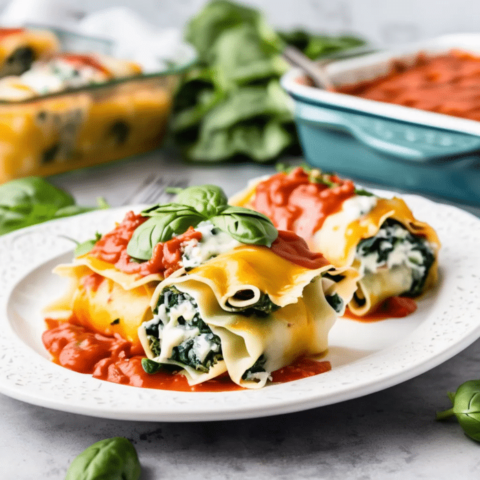Spinach Artichoke Lasagna Roll Ups are a delicious and visually stunning twist on traditional lasagna. These roll ups feature lasagna noodles filled with a creamy mixture of ricotta, spinach, and artichokes, inspired by the classic spinach artichoke dip. The filled noodles are rolled up, topped with marinara sauce, and baked to perfection with a layer of melted cheese. This dish is perfect for a special dinner or as a crowd-pleasing entrée at a potluck.