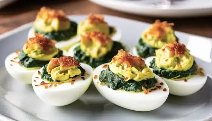 Spinach Deviled Eggs offer a fresh and flavorful variation on the classic recipe, with the added benefits of spinach for a nutritious boost. These eggs are not only visually appealing with their green hue but also packed with flavor, making them a perfect appetizer for any gathering or a healthy snack option throughout the week.