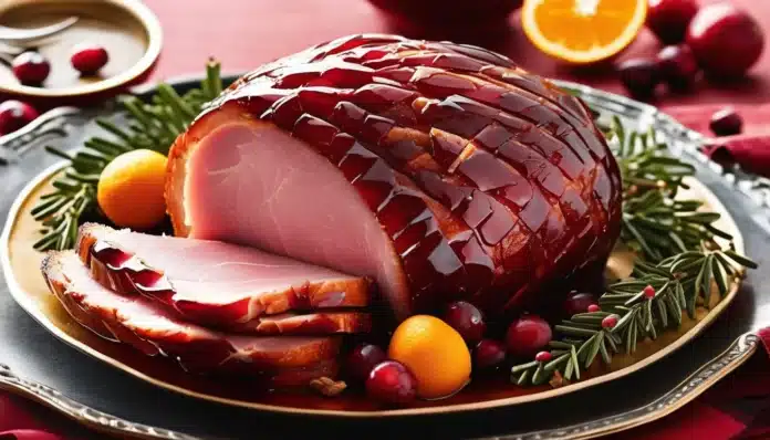 - Bake the Ham: Place the covered ham in the preheated oven and bake for about 1 1/2 to 2 hours, or until the internal temperature reaches 140°F (60°C). Baste the ham with some of the cranberry glaze every 30 minutes.