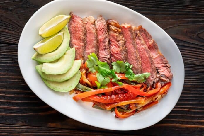 - Serve the sliced steak and sautéed vegetables on a platter with warm tortillas. Provide optional toppings like sour cream, guacamole, salsa, shredded cheese, fresh cilantro, and lime wedges for everyone to customize their fajitas.