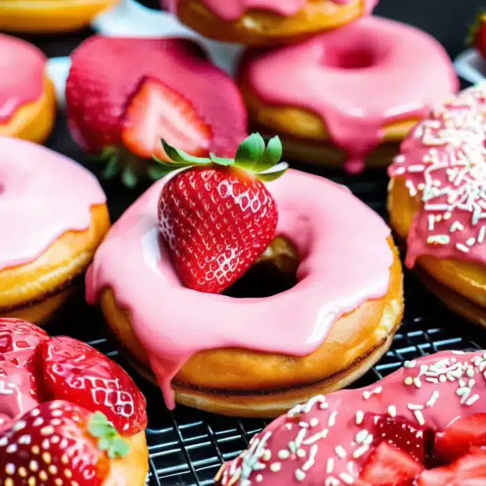 These delightful strawberry baked donuts are the perfect treat for any occasion. Light and fluffy with a subtle sweetness from fresh strawberries, they offer a healthier alternative to traditional fried donuts without compromising on flavor. The addition of Greek yogurt makes them extra moist and adds a hint of tanginess that complements the sweetness of the strawberries beautifully. Perfect for breakfast, brunch, or a sweet snack, these donuts are easy to make and sure to impress. Enjoy them plain, or top them with a simple glaze for an extra touch of sweetness.