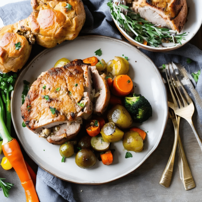 Stuffing-Stuffed Pork Chops are a flavorful, hearty meal perfect for a cozy dinner. Tender, juicy pork chops are stuffed with a savory mixture of bread, herbs, and vegetables, creating a delightful combination of textures and flavors. The stuffing adds a deliciously moist and flavorful filling, while the pork chops provide a succulent exterior. This dish is easy enough for a weeknight dinner but special enough for a holiday meal. Serve it with roasted vegetables or mashed potatoes for a complete and satisfying feast.