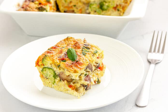• Remove from the oven and let the casserole cool for a few minutes before slicing. Serve warm.