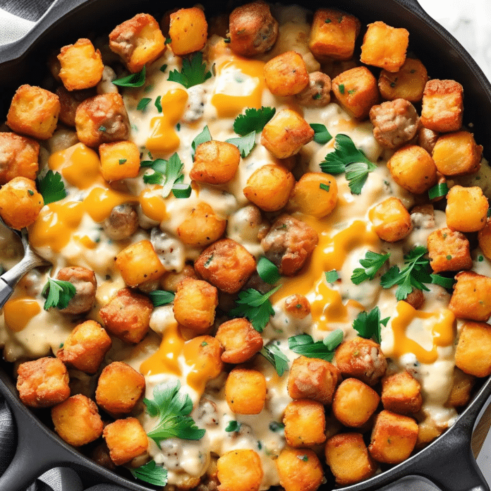 Tater Tot Casserole with Sausage is a hearty, comforting dish that combines savory sausage, creamy sauce, and crispy tater tots for a crowd-pleasing meal. The layers of seasoned sausage, vegetables, and a rich cheese sauce come together under a blanket of golden tater tots, making it a perfect option for breakfast, brunch, or dinner. This easy-to-make casserole is a favorite for family gatherings or busy weeknights when you want something filling and flavorful without spending hours in the kitchen.