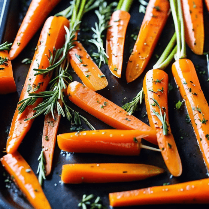 - In a large bowl, toss the carrots with olive oil, fresh thyme, rosemary, minced garlic, salt, and pepper. If you like a touch of sweetness, drizzle in the honey and mix well to coat the carrots evenly.