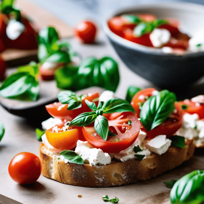 Tomato and Ricotta Salata Bruschetta is a simple yet elegant appetizer that celebrates the beauty of fresh ingredients. This dish features ripe, juicy tomatoes, fragrant basil, and tangy ricotta salata, all piled high on crisp slices of toasted bread. The contrasting textures and flavors—creamy cheese, sweet tomatoes, and a touch of garlic—make this bruschetta an irresistible bite. Perfect for summer gatherings or as a light starter, this easy-to-make dish is as beautiful as it is delicious.