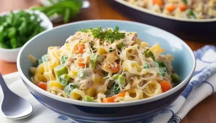Tuna Casserole with Shirataki Noodles is a delicious low-carb twist on the classic comfort food dish. This casserole is rich, creamy, and packed with flavor, featuring tender chunks of tuna and a blend of cheeses, all baked to bubbly perfection. Shirataki noodles, made from the konjac plant, are a fantastic low-calorie, low-carb alternative to traditional pasta, making this dish a great option for those looking to enjoy a comforting meal without the extra carbs. The noodles soak up the creamy sauce beautifully, creating a satisfying and hearty casserole that’s perfect for weeknight dinners or meal prep.