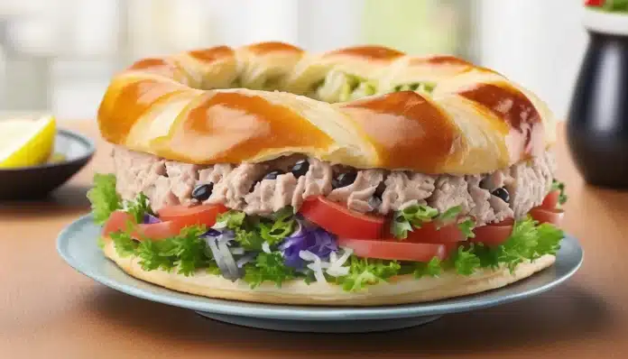 - Add the filling: Spoon the tuna mixture evenly around the base of the crescent roll ring. Gently fold the pointed ends of the dough over the filling and tuck them under the center of the ring.