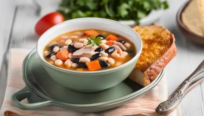 Turkey-White Bean Soup is a hearty and comforting dish that makes the most of tender turkey and creamy white beans, creating a nourishing meal perfect for any time of year. This soup is loaded with flavor from aromatic vegetables, garlic, and herbs, simmered together to create a rich and savory broth. It’s a wonderful way to use up leftover turkey or to enjoy a lighter, protein-packed alternative to traditional soups. Whether served with a slice of crusty bread or on its own, this Turkey-White Bean Soup is sure to warm you up and satisfy your hunger.
