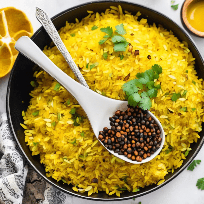Turmeric Rice is a vibrant and fragrant dish that brings a golden hue and earthy flavor to your table. Infused with the warmth of turmeric and subtle spices, this rice is not only visually appealing but also packed with health benefits thanks to turmeric’s anti-inflammatory properties. Perfect as a side dish for curries, grilled meats, or vegetables, turmeric rice is simple to prepare and adds a delicious twist to your usual rice dishes. The addition of onions, garlic, and a hint of cumin makes this rice flavorful and aromatic, making it a wonderful complement to a wide variety of meals.