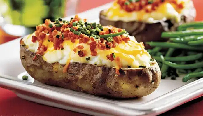 Twice-baked potatoes are the ultimate comfort food, combining the crispy skin of a baked potato with a rich, creamy filling. This classic dish is perfect for special occasions or when you want to add a little extra flair to your meal. The potatoes are baked, then scooped out and mixed with butter, sour cream, cheese, and seasonings before being baked again to perfection. The result is a deliciously creamy inside with a golden, cheesy top that pairs wonderfully with just about any main dish.