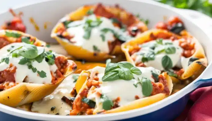 - Bake: Preheat your oven to 375°F (190°C). Sprinkle the remaining mozzarella cheese over the top of the shells. Cover the skillet with a lid or aluminum foil and bake for 20 minutes.