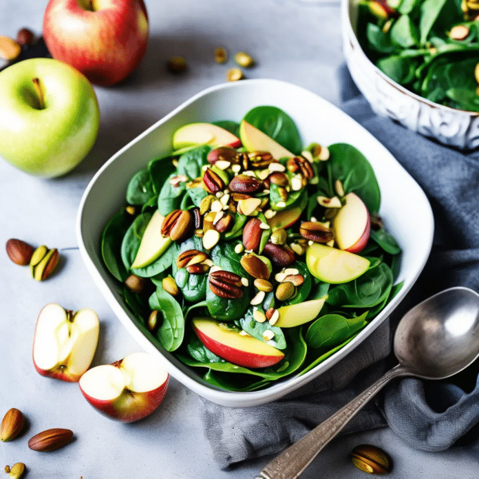 - Serve the salad warm or at room temperature, enjoying the combination of crisp spinach, sweet apples, and crunchy pistachios.